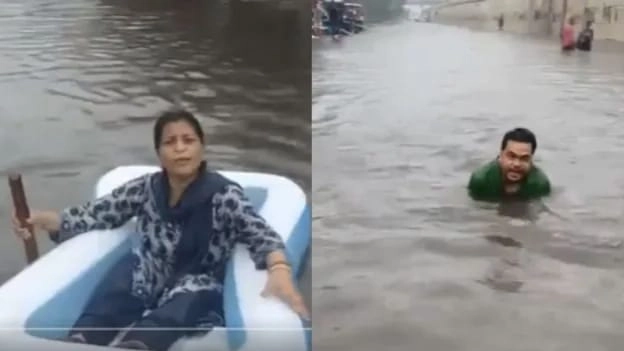 ভারী বৃষ্টিতে কোমর সমান জল! দিল্লির রাস্তায় কেউ সাঁতার কাটছেন, কেউ চালাচ্ছেন নৌকা, আরও ভোগান্তির আশঙ্কা! ...