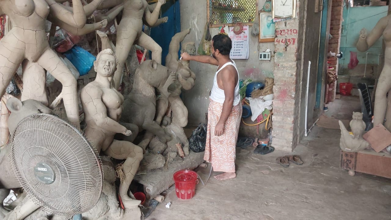 Weather: বৃষ্টি কমলেও জল ঢোকার আশঙ্কা, কুমোরপাড়া থেকে মূর্তি সরিয়ে ফেলছেন শিল্পীরা...