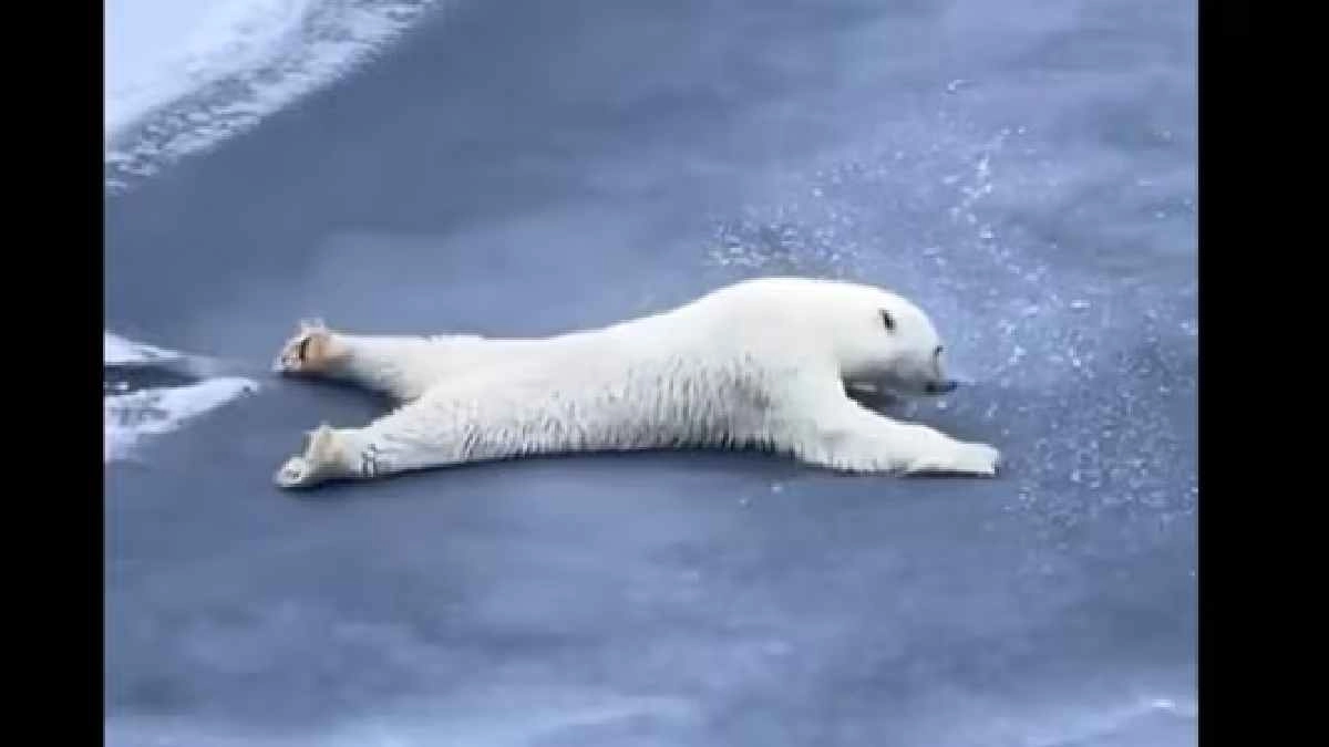 বিশাল তুলতুলে শিশু বরফের মাঠে স্লাইড করছে! রইল ভিডিও...