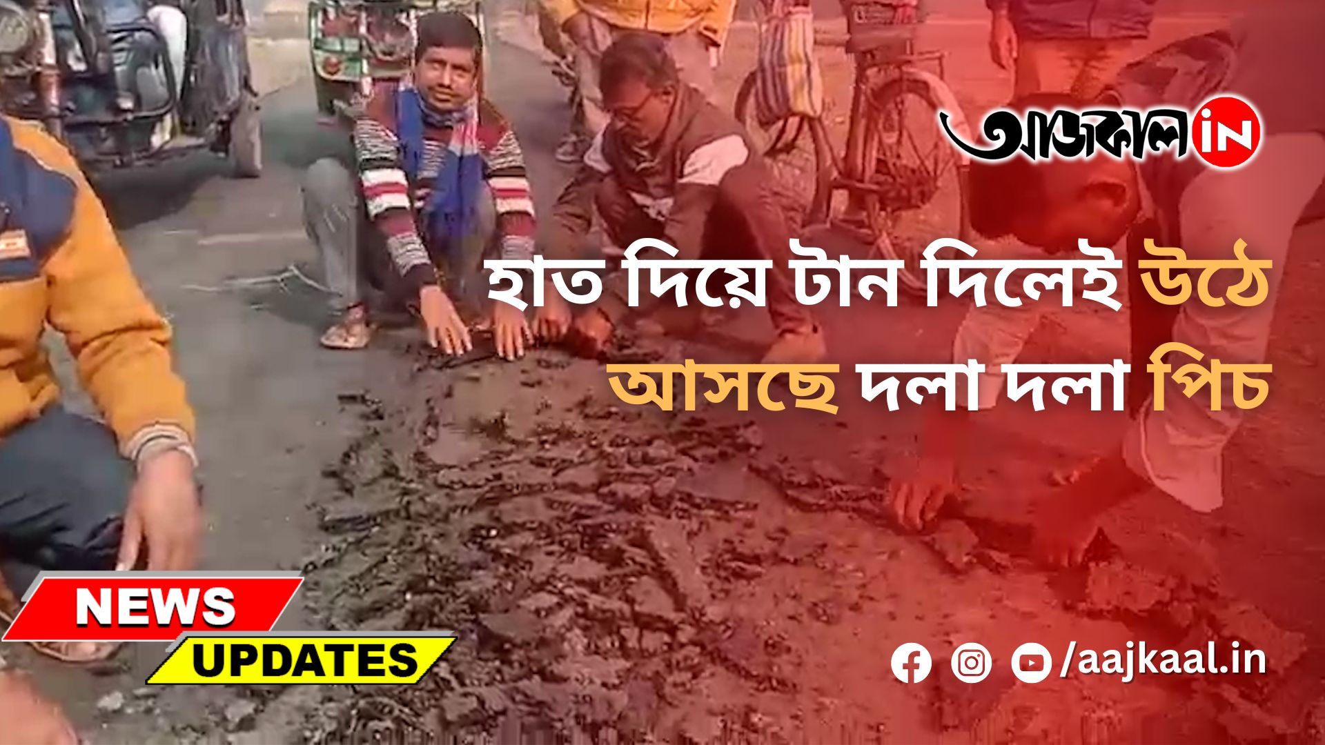 হাত দিয়ে টান দিলেই উঠে আসছে দলা দলা পিচ