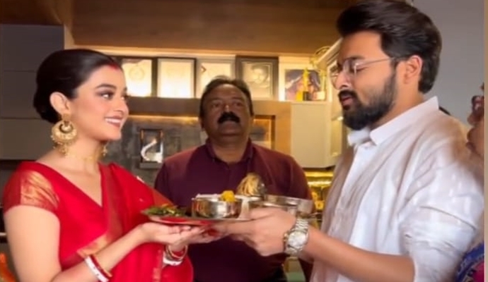 Tollywood: লাল শাড়িতে মোহময়ী দর্শনা, ভাতকাপড়ের দায়িত্ব নিয়েই বৌকে প্রণাম সৌরভের!...