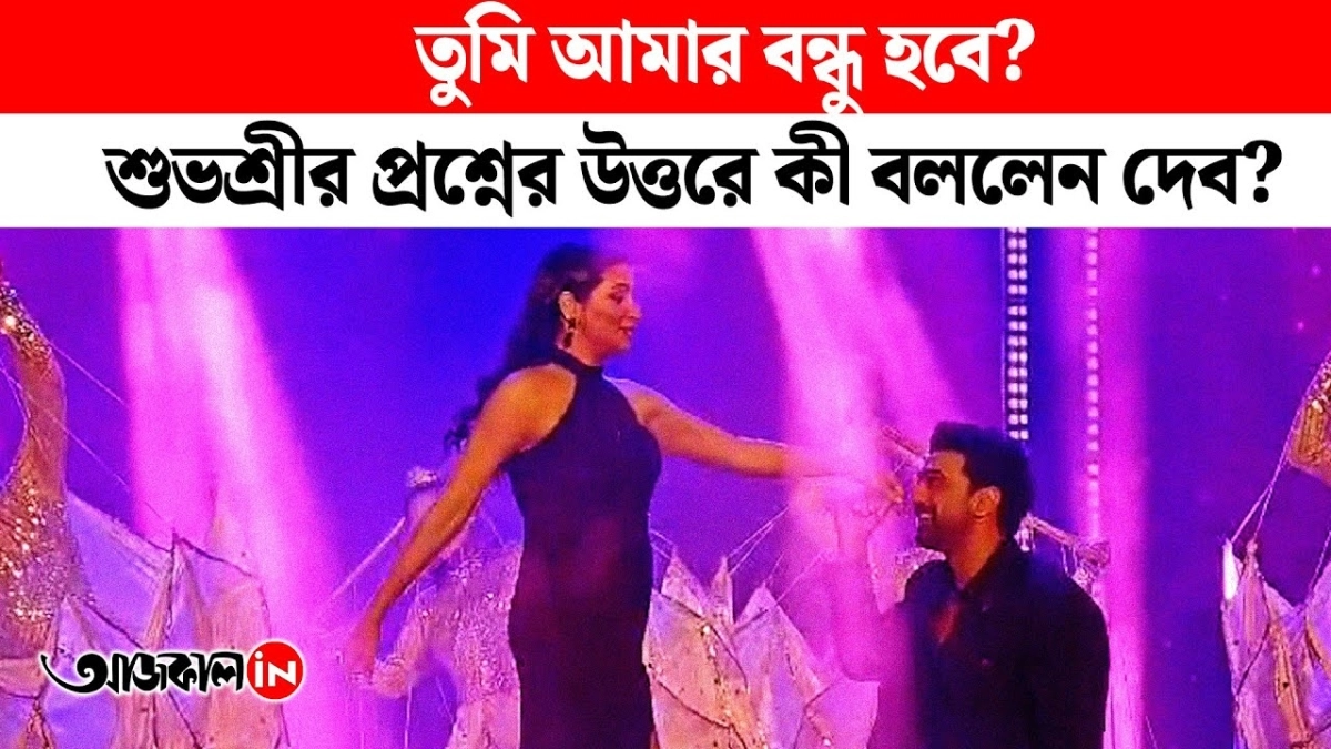শুভশ্রীর পাশে মঞ্চে দাঁড়িয়ে দেব বলে উঠলেন, ‘একটা ফ্যামিলি ফটো হয়ে যাক!’ ...