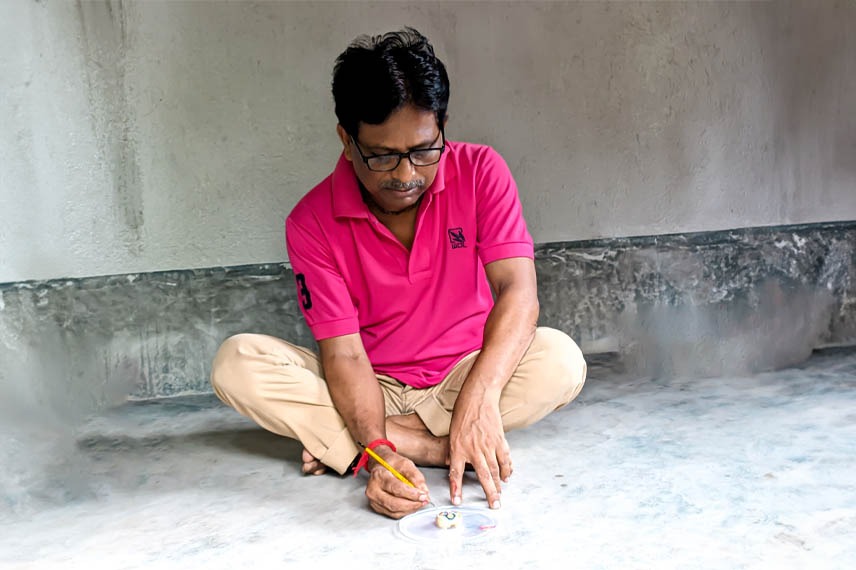 রসগোল্লায় দেবী দুর্গা, পোস্তদানায় জাতীয় পতাকার ছবি এঁকে গিনেস ছোঁয়ার স্বপ্ন বাসুর...