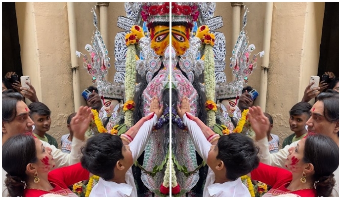 মেয়ে কাব্যর প্রথম বিজয়া, সিঁদুরে-আলতায় ছেলে কবীরকে সঙ্গে নিয়ে প্রতিমা বরণে কোয়েল মল্লিক ...