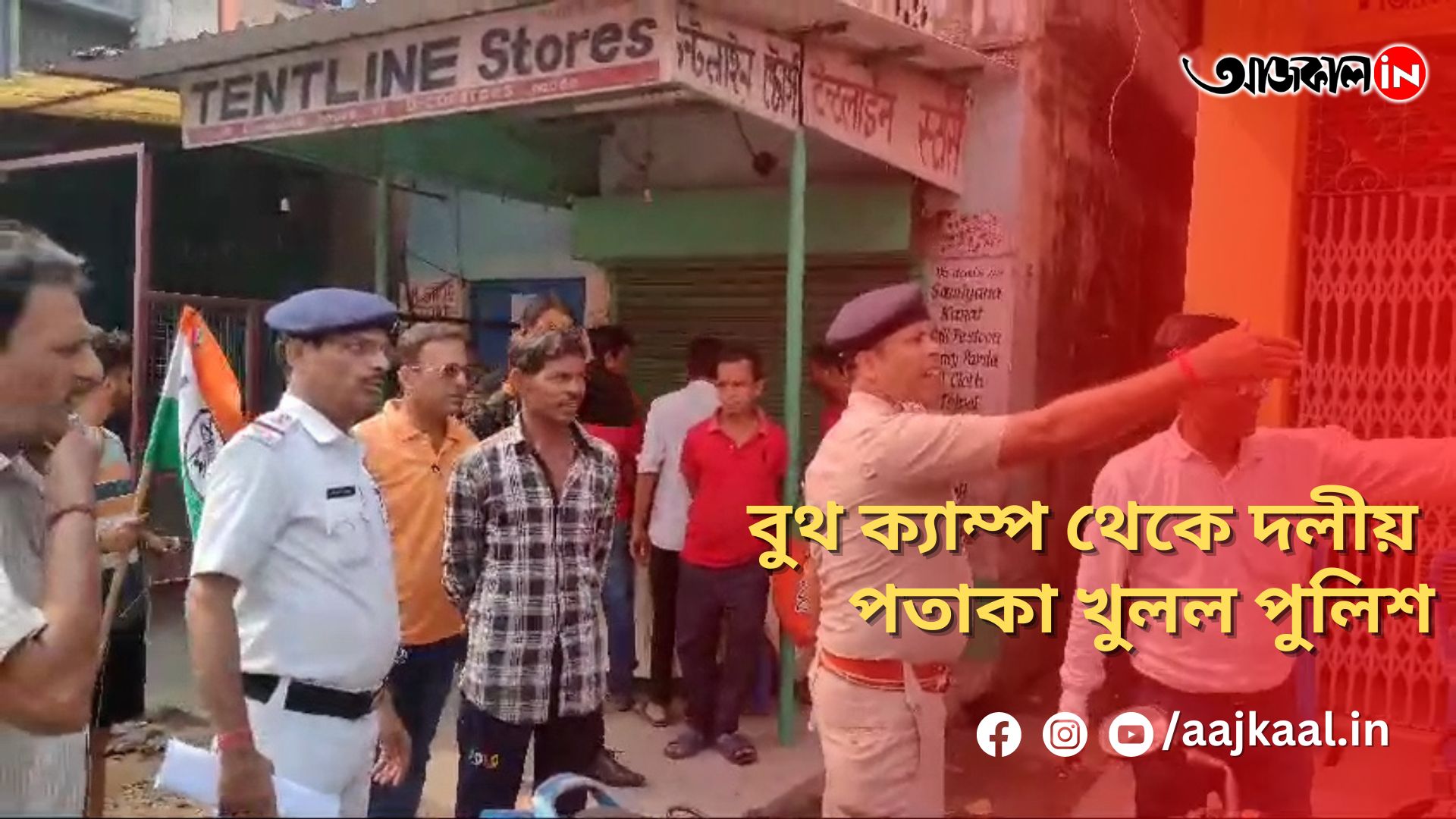 বুথ ক্যাম্প থেকে দলীয় পতাকা খুলল পুলিশ