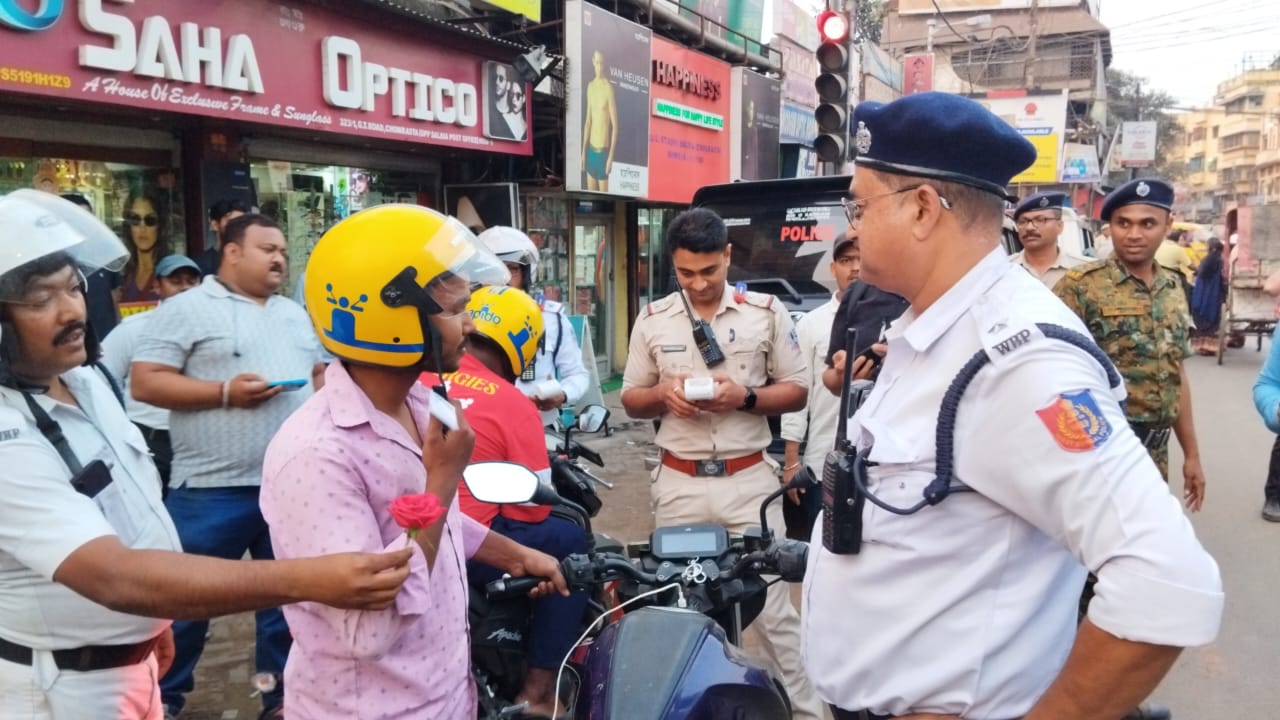 POLICE: ভাষা দিবসে গোলাপ, হেলমেট বিলি হাওড়া পুলিশের ...