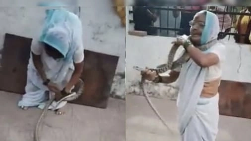 ঘরে ঘাপটি মেরে লুকিয়ে সাপ, খপ করে ধরেই গলায় পেঁচিয়ে নিলেন বৃদ্ধা! কাণ্ড দেখে ভিড়মি খেলেন নেটিজেনরা...