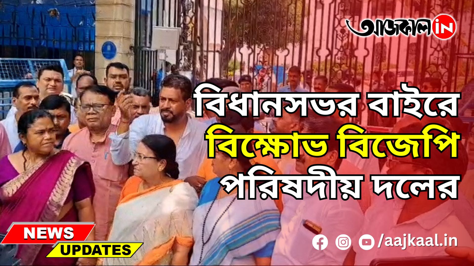 বিধানসভর বাইরে বিক্ষোভ বিজেপি পরিষদীয় দলের