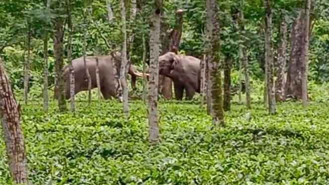 চা বাগানে দুই দাঁতাল হাতির লড়াই! ট্রাক্টর দিয়ে ভয় দেখিয়ে জঙ্গলে ফেরত পাঠালেন শ্রমিকরা, এখনও আতঙ্ক এলাকায়...