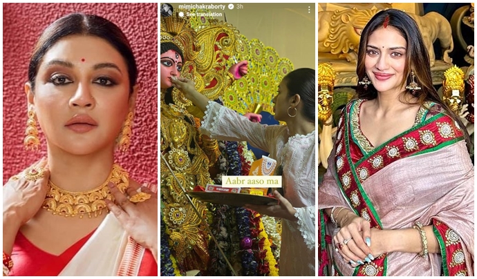 Tollywood: চোখে জল মুখে হাসি! সিঁদুরখেলা, দেবীবরণে মেতে মিমি, জয়া, নুসরত, সায়নী ...