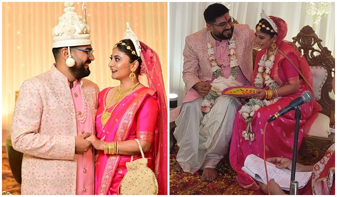 Tollywood: বিয়ের থিম গোলাপি, লাজহোম, মালাবদল, নন্দিনীর পৌরোহিত্য, চারহাত এক সন্দীপ্তা-সৌম্যর...
