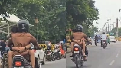 হেলমেট নেই মাথায়, বেপরোয়া বাইকের ট্যাঙ্কে বসে প্রেমিককে জড়িয়ে রোম্যান্স যুবতীর, ভিডিও দেখতেই মাথায় হাত...