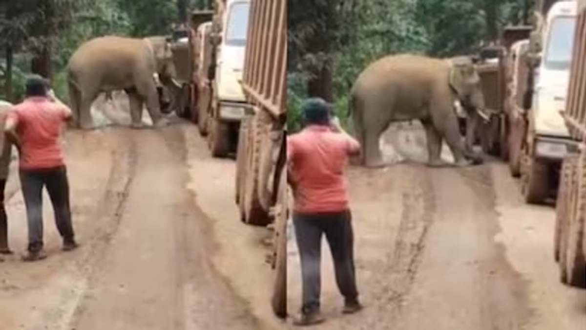 ক্ষুদার্থ হাতি রাস্তায় ট্রাক আটকাচ্ছে, খাবারের জন্য চালকদের ব্যাগ শুঁকছে! দেখুন ভিডিও...