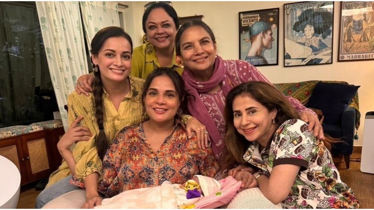 New mom Richa Chadha and baby girl pose with Bollywood ‘masis’ Dia Mirza, Shabana Azmi, among others