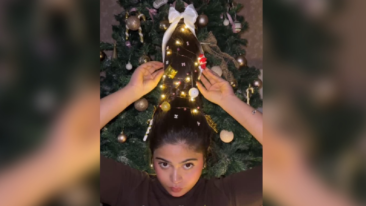চুল থাকতে ক্রিসমাস ট্রি কীসের! বড়দিনে মাথায় টুনি লাগালেন যুবতী...