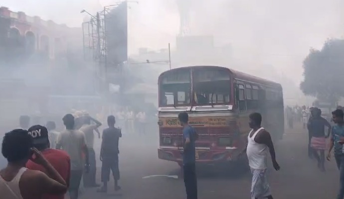 Fire: মিনিবাস থেকে গলগল করে বেরোচ্ছে ধোঁয়া, মহাজাতি সদনের সামনে হইচই ...
