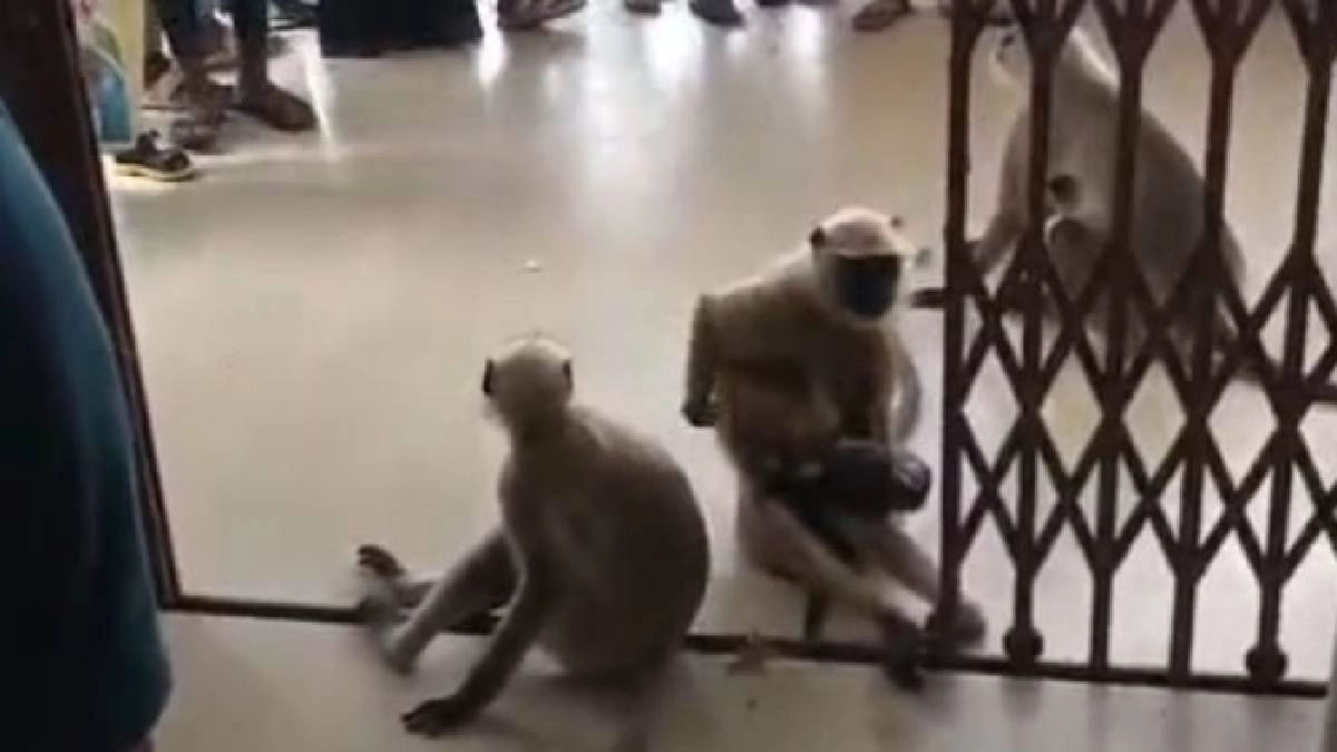 চিকিৎসার জন্য অসুস্থ সন্তানকে কোলে নিয়ে হাসপাতালে হাজির মা হনুমান...