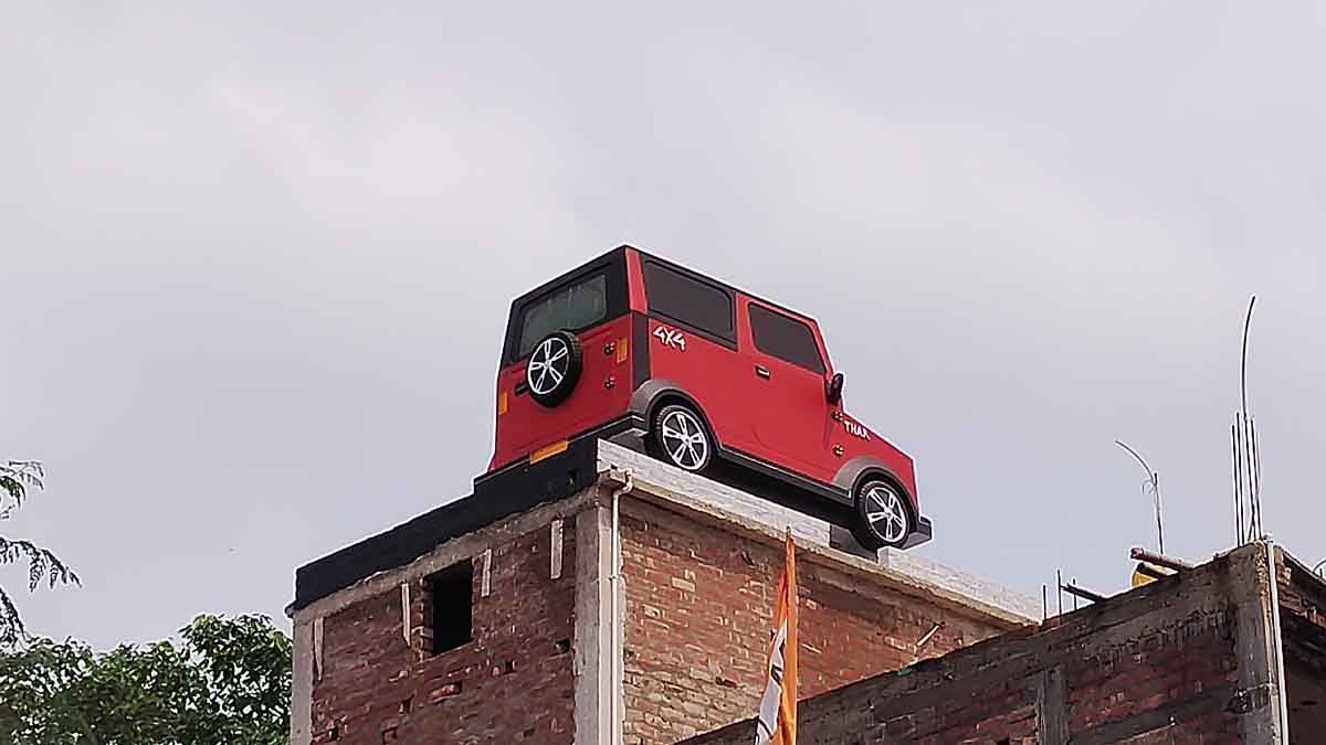 তিনতলা বাড়ির ছাদে উঠে পড়েছে মাহিন্দ্রা 'থর' গাড়ি, অবাক দৃশ্যে হতবাক পড়শিরা...