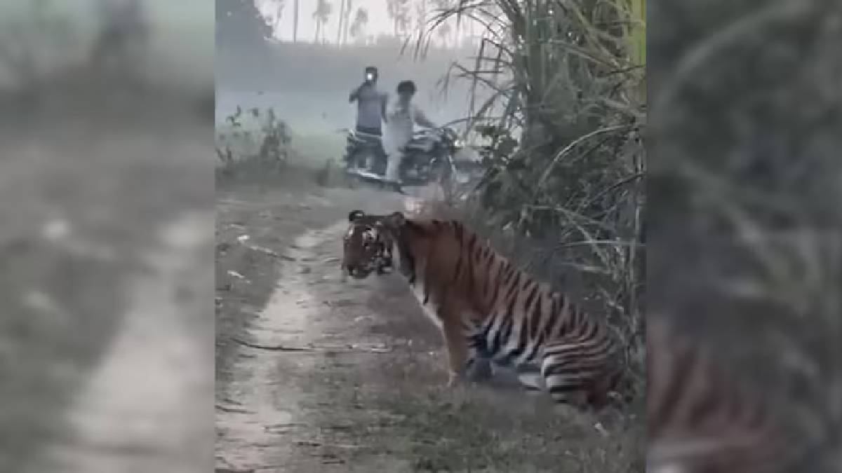 বাড়ি ঢোকার মুখে রাস্তায় বসে আছে বাঘ, ভয়ে জ্ঞান হারালেন যুবক...