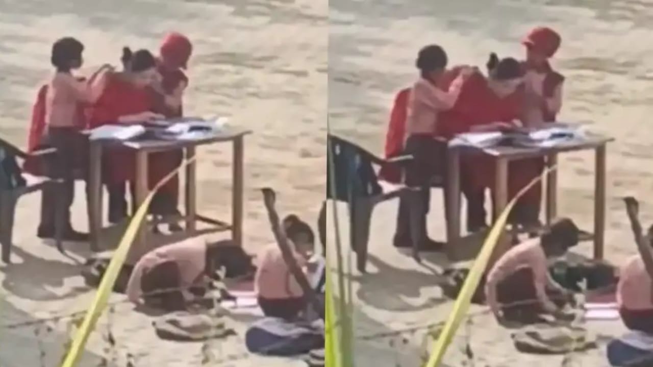 শিক্ষিকা বসে টেবিলে, পড়ানো শিকেয় তুলে ছাত্রদের দিয়ে এ কী করাচ্ছেন তিনি! নিন্দার ঝড় সর্বত্র ...
