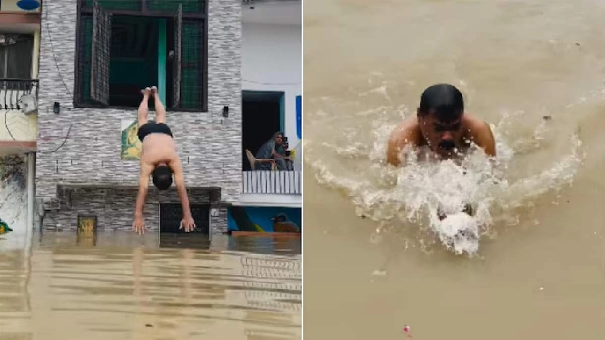 বন্যায় ডুবে গিয়েছে বাড়ির অর্ধেক, তার মধ্যেই খালি গায়ে জানলা দিয়ে জলে ঝাঁপ পুলিশ অফিসারের, রইল ভাইরাল ভিডিও...