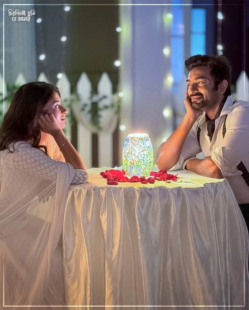 এবার সামনে এল আর্য-অপুর রোমান্টিক মুহূর্ত। দু'জনকেই দেখা গেল সাদা পোশাকে। আর্য অপুকে মনের কথা জানিয়ে দেয়। রোম্যান্সে মেতে ওঠে দু'জন। এই প্রথমবার আর্য-অপুকে এইভাবে দেখবেন দর্শক। যদিও এই রোমান্টিক মুহূর্ত শুধুই কল্পনা নাকি বাস্তব তা এখনও জানা যায়নি। তবে নায়ক-নায়িকার বয়সের ফারাক থাকলেও তাঁদের রোমান্টিক মুহূর্ত দেখে যেন চোখ সরাতে পারছেন না নেটিজেনরা।