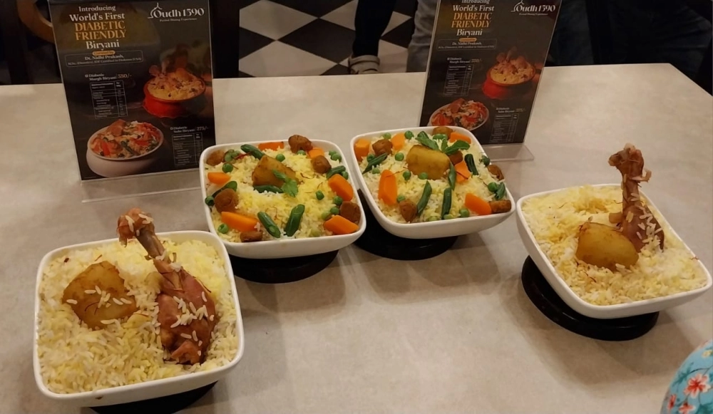 প্রায় এক যুগ আগে কলকাতাবাসীকে লখনউ বিরিয়ানির স্বাদ চিনিয়েছিল ‘অওধ ১৫৯০’। নেপথ্যে ছিলেন দুই কর্ণধার শিলাদিত্য এবং দেবাদিত্য চৌধুরী। এই রেস্তোঁরার আলো-আঁধারির খেলার সঙ্গে ঠুংরি, খেয়াল শুনতে শুনতেই এবার ডায়াবেটিসে আক্রান্তরাও বিরিয়ানি খেতে পারবেন। এমন‘ডায়াবেটিক ফ্রেন্ডলি’ বিরিয়ানি যার হাত ধরে বাস্তবায়িত হয়েছে, তিনি হলেন বিশিষ্ট পুষ্টিবিদ নিধি প্রকাশ। প্রায় ছয় মাস ধরে তিনি এই বিরিয়ানি নিয়ে গবেষণা চালিয়েছেন। এবার থেকে ‘অওধ’-এ‘ডায়াবেটিক মুরগ বিরিয়ানি’, ‘ডায়াবেটিক সাবজ বিরিয়ানি’-এই দু’ধরনেরই আমিষ ও নিরামিষ পদের বিশেষ ‘ডায়াবেটিক বিরিয়ানি’ পাওয়া যাবে।