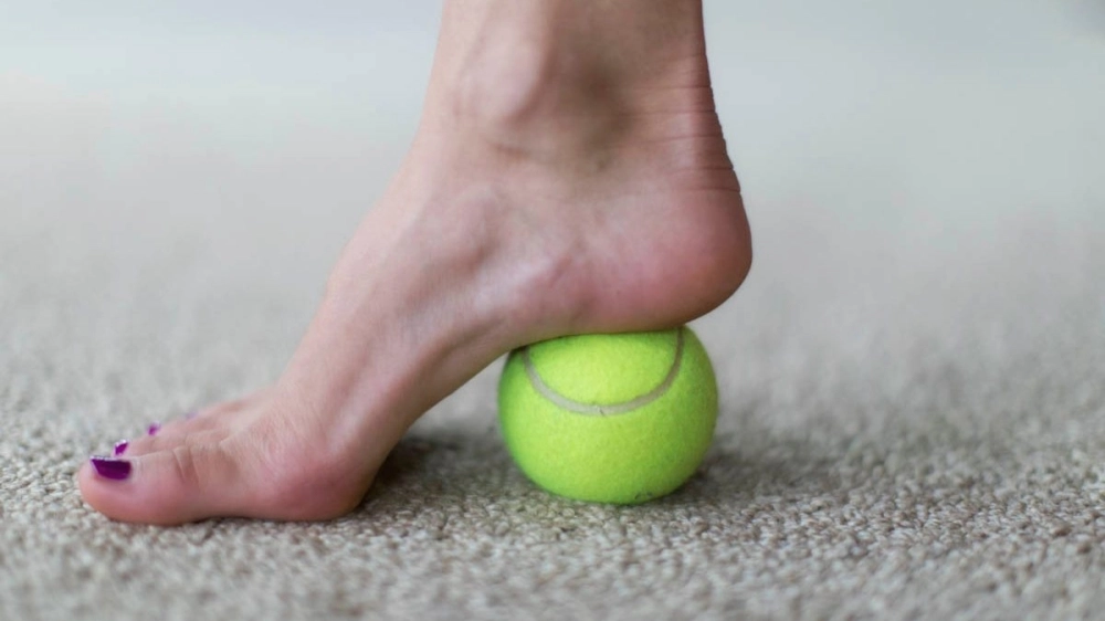 ২. খালি পায়ের তলায় টেনিস বলটি রাখুন।
