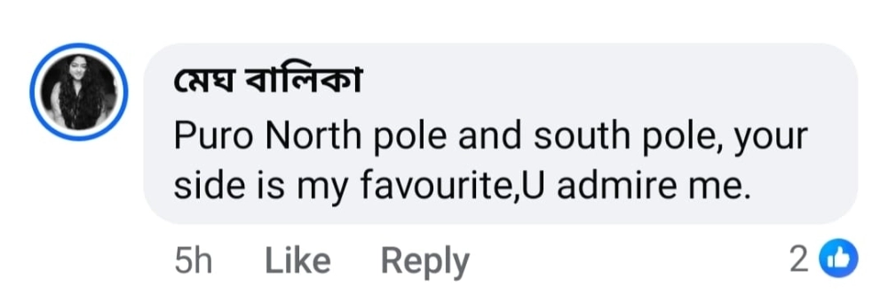 কেউ লিখেছেন, “একঘর খোঁচা”, কেউ বা “একজন দক্ষিণ মেরু অন্যজন উত্তর মেরু । আমি অবশ্য আপনার দিকে আর সেটাই আমার পছন্দের।”