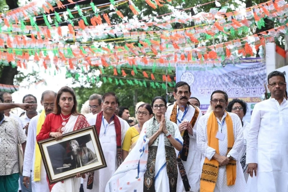 ভিন রাজ্যে 'অত্যাচারিত' বাংলাভাষীদের প্রতি মুখ্যমন্ত্রী বলেন, 'যারা বাংলার বাইরে অত্যাচারিত হচ্ছেন তাঁদের অনুরোধ করব ফিরে আসুন। বলুন কবে আসবেন? আমরা নিয়ে আসব। আমরা প্রয়োজনীয় ব্যবস্থা করব। যখন ওরা চায় না তখন চলে আসুন।' নির্বাচন কমিশনকে আক্রমণ করে এদিন মমতা বলেন, 'নির্বাচন কমিশন বলছে আগের ভোটার কার্ড হবে না। নতুন ভোটার লিস্ট হবে। ওদের জিজ্ঞাসা করুন তোমাদের বার্থ সার্টিফিকেট আছে তো?' হুঁশিয়ারি দিয়ে মমতা বলেন, একটা মানুষের ঠিকানা কেড়ে নিলে তোমার ঠিকানা রাখব না।