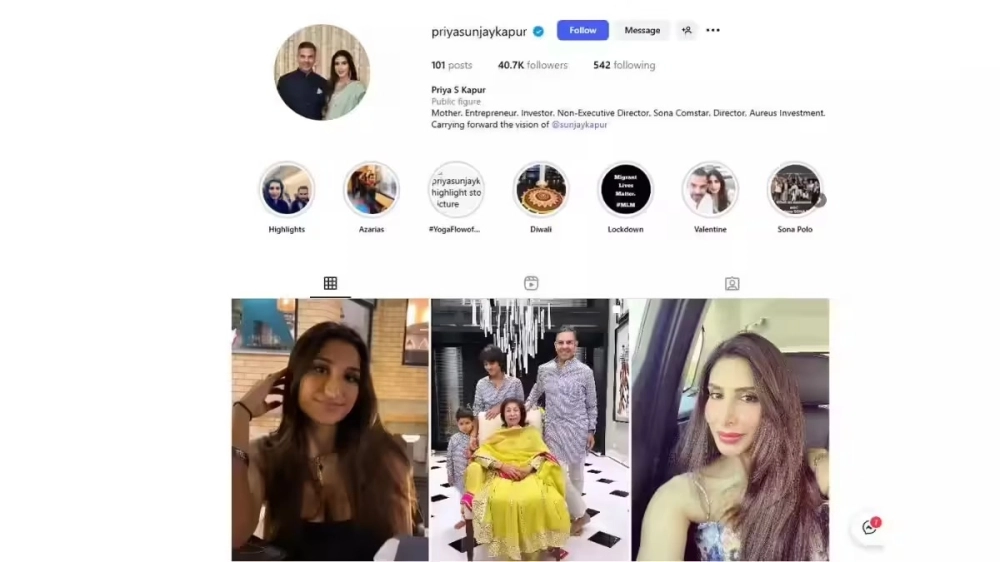 সোনার পরিবারের উত্তরাধিকার নিয়ে এক বিশাল আর্থিক সংঘর্ষের মাঝে, প্রয়াত ব্যবসায়ী সুনজয় কপুরের স্ত্রী প্রিয়া সচদেব কপুর এক গুরুত্বপূর্ণ পদক্ষেপ নিলেন। সম্প্রতি ইনস্টাগ্রামে নিজের নাম পাল্টে প্রিয়া সুনজয় কপুর করেছেন তিনি। শুধু তাই নয়, একই সঙ্গে প্রোফাইলে নিজের নতুন দায়িত্বও উল্লেখ করেছেন—‘নন এক্সিকিউটিভ ডিরেক্টর, সোনা কমস্টার’।প্রিয়ার ইনস্টাগ্রাম বায়োতে এখন লেখা—