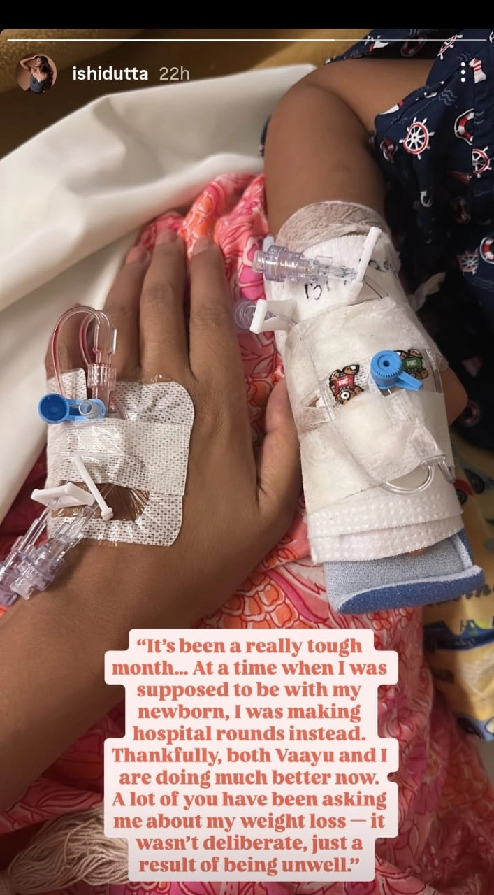 অনেকেই সোশ্যাল মিডিয়ায় ঈশিতার কাছে জানতে চেয়েছেন আচমকা কীভাবে এত তাড়াতাড়ি ওজন ঝড়িয়ে রোগা হয়ে গেলেন? আসলে অসুস্থতার কারমেই দ্রুত গতিতে ওজন কমছিল। সেই বিষয়টি উল্লেখ করে ঈশিতা জানিয়েছে, 'এটা সত্যিই খুব কঠিন একটা সময় ছিল। যখন আমার সন্তানের সঙ্গে থাকার কথা তখন আমি হাসপাতালে ভর্তি। ভগবানের আশীর্বাদে এখন আমি আর বায়ু দু'জনেই আগের তুলনায় অনেকটা সুস্থ আছি। অনেকেই আমার ওজন কমে যাওয়ার বিষয়ে জানতে চেয়েছিলেন। আসলে সেটা ইচ্ছাকৃত নয়, অসুস্থতার কারণে ওজন কমে যাচ্ছিল।'