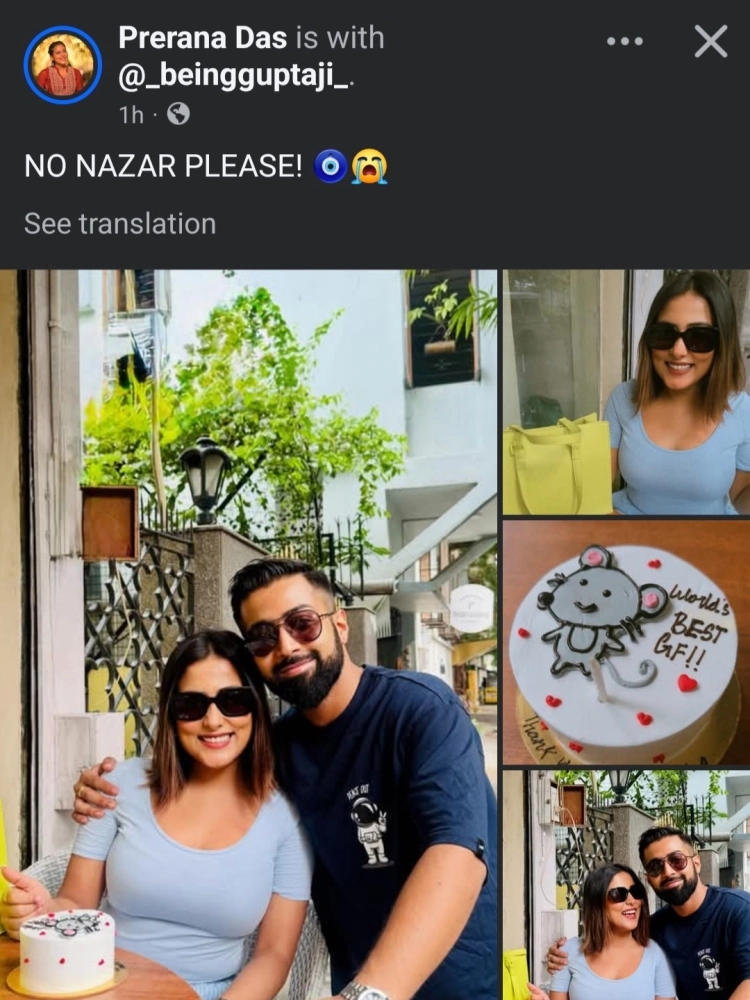 সার্থকের সঙ্গে বেশ কয়েকটি মিষ্টি ছবি ভাগ করেছেন প্রেরণা। যেখানে দেখা যাচ্ছে 'ওয়ার্ল্ড বেস্ট গার্লফ্রেন্ড'-এর তকমা পেয়েছেন প্রেরণা। আসলে একটা কেকের উপর লেখা রয়েছে এই কথা। এই ছবিগুলো সমাজমাধ্যমে ভাগ করে প্রেরণা লেখেন, 'দয়া করে নজর দেবেন না।' এই পোস্ট ছড়িয়ে পড়তেই নেটিজেনদের শুভেচ্ছাবার্তা ভরে গিয়েছে। অনেকে আবার এ-ও বলছেন যে, এটাও কোনও ভিডিওর অংশ। তবে এবার আর সেটা হবে বলে মনে করছেন না প্রেরণার অনুরাগীরা। কারণ, তাঁদের প্রিয় কনটেন্ট ক্রিয়েটর যে এবার সত্যিই প্রেমে পড়েছেন, তা নিয়ে কোনও দ্বন্দ্ব নেই। তাই এই ছবি প্রেরণা ভাগ করতেই তাঁরা কবে বিয়ের পিঁড়িতে বসছেন তা নিয়ে প্রশ্ন শুরু হয়ে গিয়েছে নেটপাড়ায়। যদিও এর উত্তর এখনও পর্যন্ত দেননি তিনি।