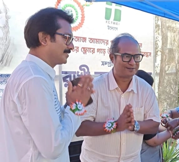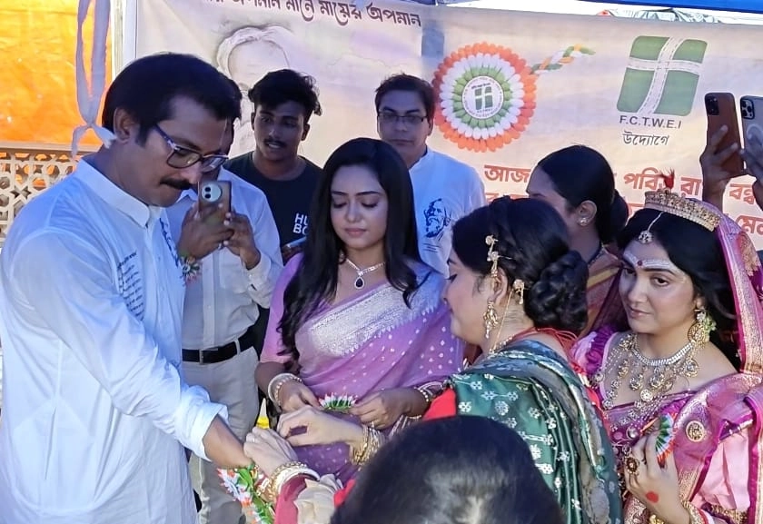 শনিবার রাখিবন্ধন উৎসবে মেতে উঠল স্টুডিও পাড়া। ফেডারেশন সভাপতি স্বরূপ বিশ্বাসের উদ্যোগে শিল্পী কলাকুশলী সহ-প্রযোজক ও স্টুডিও মালিকরা এক হয়ে উদযাপন করলেন রাখি বন্ধন উৎসব। ফেডারেশনের পক্ষ থেকে প্রত্যেক স্টুডিওতে এই রাখি বন্ধন উৎসবের আয়োজন করা হয়। টালিগঞ্জের একাধিক স্টুডিওতে উপস্থিত ছিলেন ফেডারেশন সভাপতি স্বরূপ বিশ্বাস স্বয়ং। এদিন একে অপরকে রাখি পরিয়ে দেওয়ার পাশাপাশি মিষ্টি খাইয়ে দেন। এই মঞ্চ থেকে বাংলা ভাষাকে বাঁচিয়ে রাখার বার্তা দেন স্বরূপ বিশ্বাস, শুধু তাই নয় জুনিয়র মহিলা শিল্পীদের কথা ভেবে একটি নতুন পদক্ষেপ নেন ফেডারেশন সভাপতি।