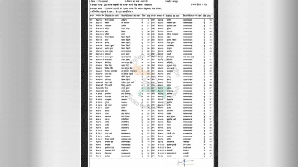 এই তালিকাটি বারাণসীর ভেলুপুর এলাকার ভোটার তালিকা, যেখানে বিভিন্ন বয়সের ৫০ জন ভোটারের নাম রয়েছে এবং প্রত্যেকের পিতার নাম হিসেবে 'রামকমল দাস' লেখা আছে।