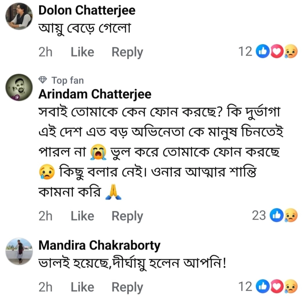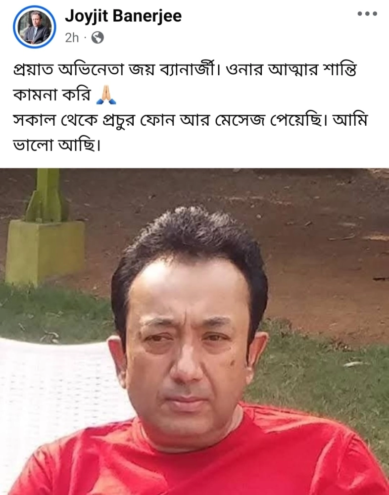 অভিনেতার সঙ্গে যোগাযোগ করে আজকাল ডট ইন। জয়জিতের কথায়, “বাধ্য হয়েই লিখেছি ওই পোস্ট। জয়দা মারা গিয়েছেন, এমন খারাপ খবরের মাঝে আমার ফোনে অজস্র মেসেজ ঢুকছে। বেশিরভাগই ‘তুমি বেঁচে আছো তো?’, ‘তোমার নামে এটা কী খবর শুনলাম?’ ফোন তো আসছেই। কী বলব বলুন! আমি সাধারণত শুটিং না থাকলে একটু দেরি করেই সকালে বিছানা ছাড়ি। আজকেও উঠেছি খানিক দেরি করেই। উঠে দেখি, ফোনে অজস্র মিসড কল। এমন ব্যক্তিরাও ওই তালিকায় রয়েছেন যাঁরা কোনওদিন ও খোঁজ নেন না। তারপর এই দুঃসংবাদ পেয়েই বুঝলাম আসল ব্যাপারটা। তিনি আরও ক্ষোভ প্রকাশ করে বলেন—“মানে, জয় আর জয়জিৎ— এই দুই নামও মানুষ গুলিয়ে ফেলছে! কিন্তু তাই বলে কেউ কি কাউকে জিজ্ঞেস করে— ‘তুমি বেঁচে আছো তো?’ মানুষের ভদ্রতা বা সাধারণ জ্ঞান বোধহয় একেবারেই হারিয়ে ফেলেছে। শুনেছিলাম মানুষের ভদ্রতা, সাধারণ জ্ঞান হাঁটুতে গিয়ে থেকেছে, এখন দেখছি সেটাও ভুল। ওটা গোড়ালিতে গিয়ে ঠেকেছে!”