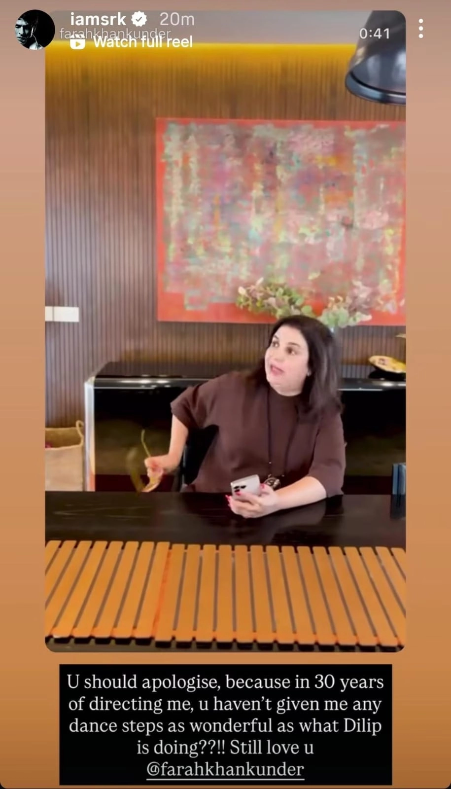 সমাজমাধ্যমে এই পোস্ট দেখামাত্রই মজার প্রতিক্রিয়া দিয়েছেন খোদ শাহরুখ। ফারহার ভিডিও দেখে শাহরুখ খান নিজের ইনস্টাগ্রাম স্টোরিতে লিখলেন,“ ফারহা, তোমার ক্ষমা চাওয়া উচিত, কারণ গত ৩০ বছরে তুমি আমাকে এমন দারুণ সব নাচের স্টেপ কখনও দাওনি! দিলীপকে দারুণ লাগছে… ভালবাসা।”