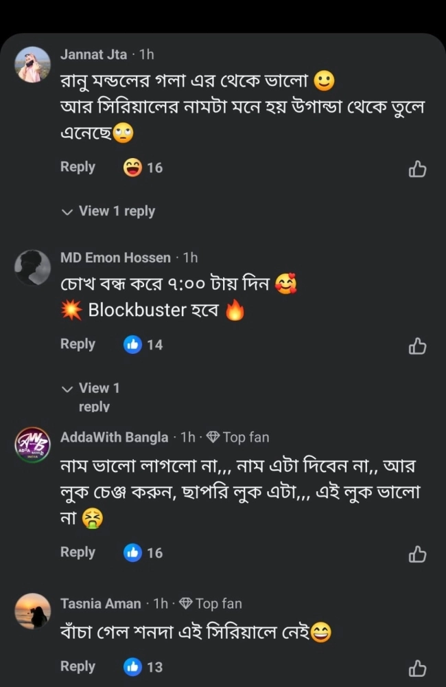 নেটিজেনরা মধুমিতার টেলিভিশনে ফেরার খবরে যতটা খুশি ছিলেন, ধারাবাহিকের প্রোমো প্রকাশ্যে আসতেই বেজায় চটেছেন। সমাজমাধ্যমমে একজন লিখেছেন, 'কি লিরিক্স রে বাবা! বাবা পেটায় মাকে, পাড়ার লোকে দাঁড়িয়ে দেখে!', অন্যজন লিখেছেন, 'যেমন সিরিয়ালের নাম তেমন কাস্টিং, তেমন গানের লিরিক্স। এক কথায় জাস্ট অনবদ্য অসাধারণ তবে অবশ্যই শেষের দিক থেকে।' আরেকজন লেখেন, 'সেইতো সব শেষে বিয়ে টিয়ে করে জা-শাশুড়ির কুচুটেগিরি সামলানো আর দু'জনের পরকিয়া লেখা আছে স্ক্রিপ্টে, শুরুতে তাহলে এত ঝ্যাকান্যাকার কি দরকার।' এদিকে, এক নেটিজেন লেখেন, 'রানু মণ্ডলের গলা এর থেকে ভাল। আর সিরিয়ালের নামটা মনে হয় উগান্ডা থেকে তুলে এনেছে।'