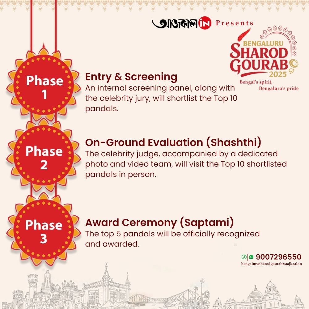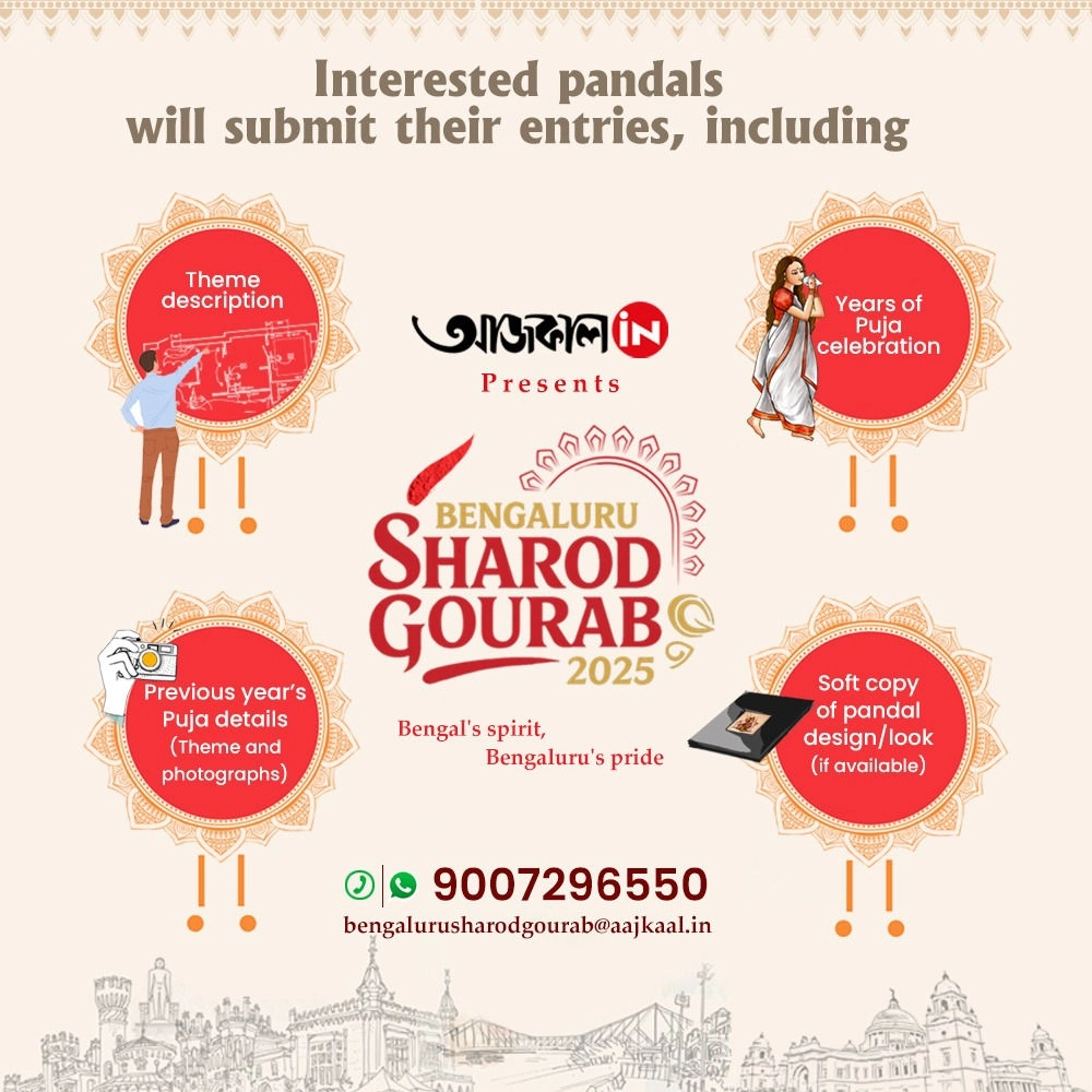আজ সূচনা হলেও আগামী দিনে এই উদ্যোগই হয়ে উঠতে পারে বেঙ্গালুরুর দুর্গোৎসবের মুখ্য সম্মান—যে স্বীকৃতির স্বপ্ন দেখবে প্রতিটি পুজো কমিটি। এক কথায়, ‘শারদ গৌরব’ হয়ে উঠতে পারে সেই মানদণ্ড, যার দিকে তাকিয়ে থাকবে পুরো শহর।