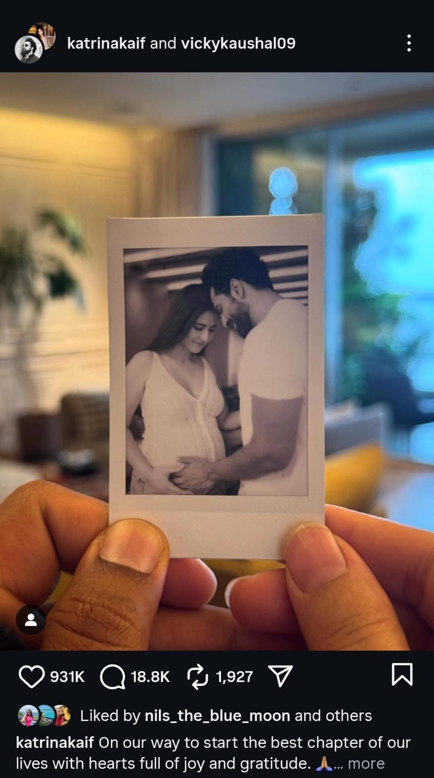 কিছুদিন আগে সামনে এসেছিল ক্যাটরিনার মাতৃত্বকালীন ফটোশুটের ছবি। আবছা হলেও ওই ছবি দেখে অভিনেত্রীকে চিনে ফেলেছিলেন নেটিজেনরা। এবার ভিকি-ক্যাটরিনার পোস্ট সোশ্যাল মিডিয়ায় ভাইরাল হতেই অনুরাগী থেকে তারকারাও জুটিকে শুভেচ্ছা জানাতে শুরু করেন।