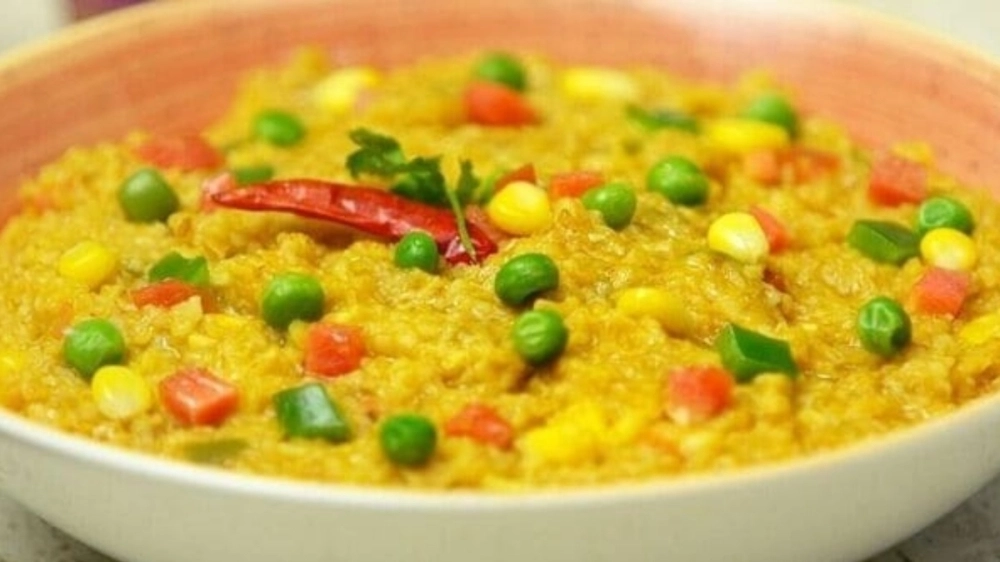 উপকরণ- ২০০ গ্রাম মুগ ডাল, ২০০ গ্রাম গোবিন্দভোগের চাল, ৫০ গ্রাম চিনি, ফুলকপি ২০০ গ্রাম, আলু ২০০ গ্রাম, মটরশুঁটি ১০০, টমাটো ১০০ গ্রাম, খিচুড়ি-র উপকারিতা, জিরে, এলাচ, দারচিনি, শুকনো লঙ্কা, তেজপাতা (৪টি), আদাবাটা (দেড় চামচ), নারকেল কোট়া ১ টেবিলচামচ, কাঁচা লঙ্কা ৫ টি, হলুদ গুড়ো ১ চামচ, জিরে গুঁড়ো ১ চামচ, ঘি ১ চামচ, গরমা মশলা গুঁড়ো সামান্য, নুন , জল।