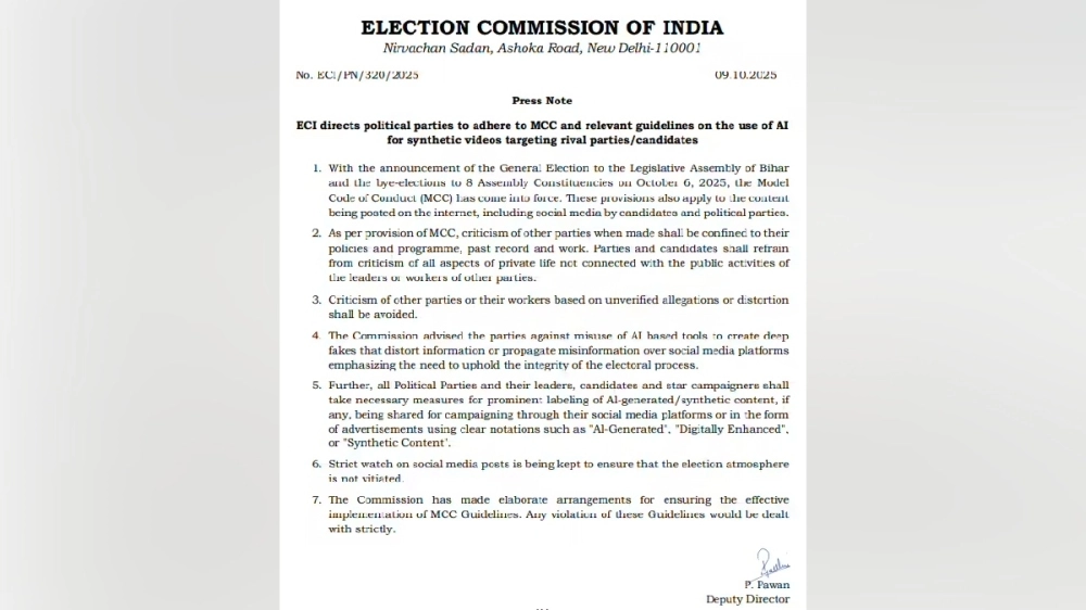 আজকাল ওয়েবডেস্ক: ভোট বিহারে। দিন ঘোষণা হয়ে গিয়েছে। নানা বিষয়ে, একগুচ্ছ নির্দেশিকা নির্বাচন কমিশনের। তারসঙ্গেই ভাবনা বাড়াচ্ছে প্রযুক্তিও। তথ্য তেমনটাই। তথ্য, বিহার ভোট প্রসঙ্গে এআই, ডিপফেক-ও বাড়াচ্ছে ভাবনা। বৃহস্পতিবার নির্বাচন কমিশন, বিহারের রাজনৈতিক দল, প্রার্থী, নেতাদের নির্দেশিকা জারি করে সতর্ক করেছে, ভোট প্রচার-সহ কোনও বিষয়েই যেন বিপরীত রাজনৈতিক দলের প্রার্থীদের অপদস্থ করতে এআই-ডিপফেক ব্যবহার না করা হয়।