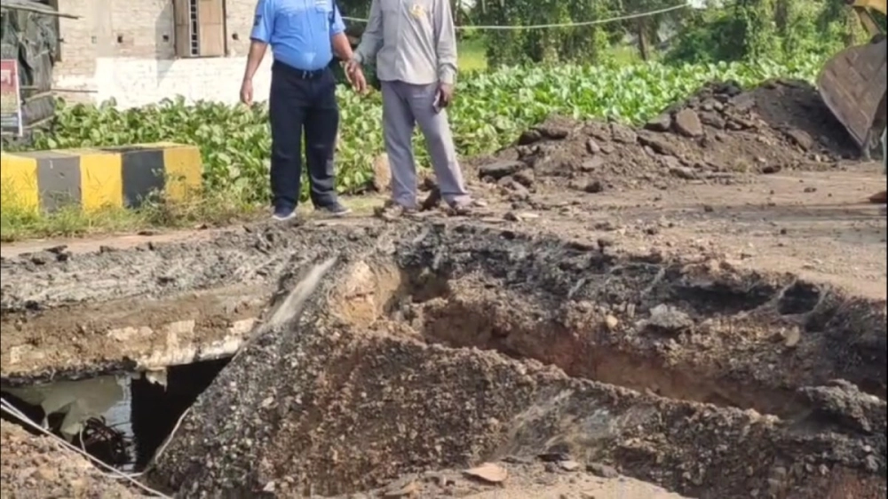 স্থানীয় সূত্রে জানা গিয়েছে, টানা বৃষ্টির ফলে কালভার্টের নিচের নালায় জলস্তর হঠাৎ বেড়ে যায়। প্রবল জলের চাপে দুর্বল হয়ে পড়ে কালভার্টের নিচের অংশ। শেষমেশ শনিবার দুপুরের দিকে একদম মাঝ বরাবর ভেঙে যায় ব্রিজটি। অত্যধিক বৃষ্টির কারণে জলের চাপে ব্রিজটি এমন পরিস্থিতিতে পৌঁছেছে বলে জানা গিয়ে ছে।