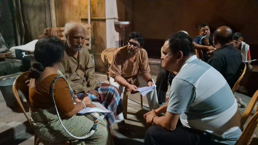 গল্পে চঞ্চল চৌধুরীর বাবার চরিত্রে লোকনাথ দে। অন্যদিকে, ছেলের চরিত্রে ঋদ্ধি সেন। ফ্লোরে তখন চঞ্চল চৌধুরীর শট চলছে। ছাপোষা, গ্রাম্য পরিবেশে মাটির কাছাকাছি এক চরিত্রকে পর্দায় ফুটিয়ে তুলছেন তিনি। ওপার বাংলা থেকে ব্রাত্য বসুর এক কথায় এপার বাংলায় চলে এসেছেন তিনি। শান্তিনিকেতন তাঁর কাছে স্বপ্নের জায়গা। আজকাল ডট ইন-কে চঞ্চল চৌধুরী বলেন, "অনেকদিনের ইচ্ছে ছিল শান্তিনিকেতনে আসব। শুটিংয়ের জন্য যখন এলাম মনটা ভাল হয়ে গেল। রবি ঠাকুরের সঙ্গে তো শেকড়ের টান রয়েছে। তাই বোধহয় এই যাত্রায় আমার ইচ্ছেটা পূরণ হল।"