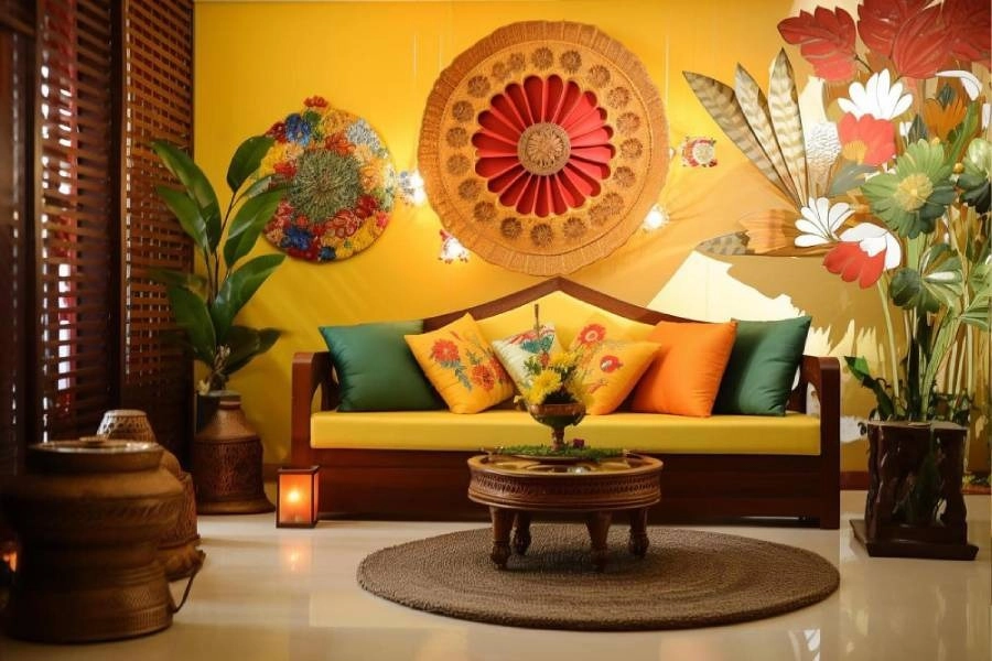 খুশিয়াল রংঃ এবারের উৎসব প্যালেটে থাকতে পারে ওয়ার্ম নিউট্রাল শেডস, যে রংগুলো নিমেষে আড্ডার মৌতাতে ছড়িয়ে দিতে পারে একমুঠো উষ্ণতা। একটু মেটালিক টোনের বেইজ বা রাস্ট থাক কুশন কভারে। জানলা কিংবা দরজায় সোনালি জরির কাজ করা ক্রিম রঙা পর্দা। ঘর সাজাতে বেছে নিতেই পারেন টেরাকোটার প্রদীপ বা পিতলের টুকিটাকি। ভাবছেন একটু রাজকীয় মেজাজ আসুক? তবে দেওয়ালে লাগুক ঝলমলে ছোঁয়া। এমারেল্ড গ্রিন বা রয়্যাল ব্লু-র মতো শেড বেছে নিতেই পারেন। দেওয়াল সাজছে এমারেল্ড সিল্কে? তবে কুশনে থাক স্যাফায়ার ব্লু। উৎসবের আলোতেও টারকোয়াজ ব্লু ল্যাম্পশেড ভাল দেখাবে।