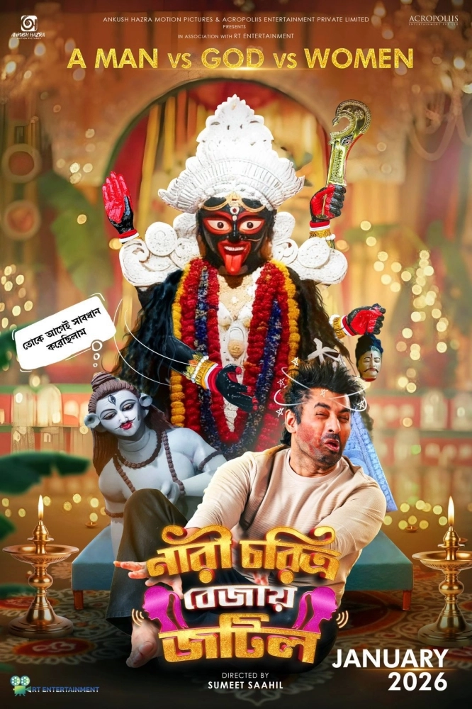 কালীপুজোয় বড় চমক দিলেন অভিনেতা অঙ্কুশ হাজরা। প্রকাশ করলেন তাঁর আসন্ন ছবি ‘নারী চরিত্রে বেজায় জটিল’-এর ঝাঁ চকচকে নতুন লুক। আর সেই পোস্টার প্রকাশের পর থেকেই সোশ্যাল মিডিয়ায় ঝড়। ভক্তরা অধীর আগ্রহে অপেক্ষা করছেন সরস্বতী পুজো ২০২৬-এর এই বড় রিলিজের জন্য।