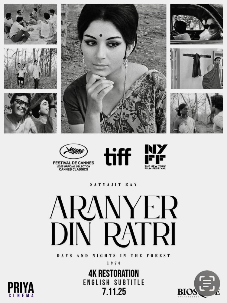 যেভাবে কান থেকে টরন্টো, আর এখন ভারতজুড়ে এই সিনেমার যাত্রা যেন এক প্রতীক হয়ে দাঁড়িয়েছে সময় অতিক্রম করা এক শিল্পীর অমর সৃষ্টির। ‘অরণ্যের দিনরাত্রি’ শুধুমাত্র সত্যজিৎ রায়ের ছবিই নয়, এটি এক যুগের অনুভূতি, যা আজও মন ছুঁয়ে যায়, সময়কে থমকে দেয়, আর প্রকৃতির বুকে ফিরিয়ে দেয় মানুষকে নিজের কাছে।
