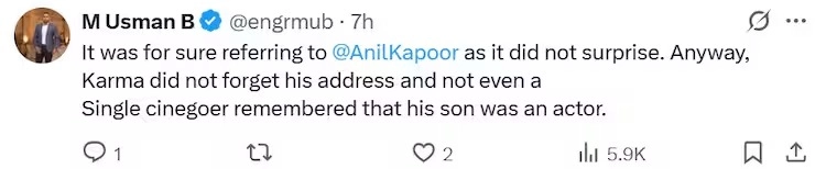 নাম প্রকাশ না করলেও সোশ্যাল মিডিয়ায় ঝড় উঠেছে। বহু নেটিজেন সরাসরি দাবি করেছেন, আদিত্য আসলে ইঙ্গিত দিচ্ছেন অনিল কাপুর এবং তাঁর দাদা বনি কাপুরের দিকেই। এক ব্যবহারকারী লিখেছেন—“নিশ্চয়ই অনিল কাপুরের কথাই বলেছেন। ভাগ্যও পরে তার হিসেব দিয়েছে, আজ কেউ মনে রাখে না যে তাঁর ছেলেও অভিনেতা ছিল!”